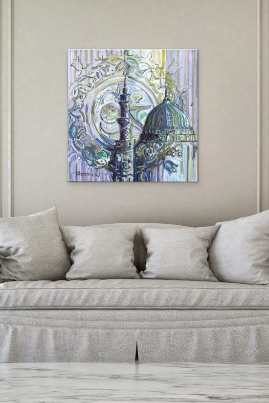 SR625.000 out of 5 - ألوان اكريلك, فن إسلامي, فن إنطباعي, نهار مرزوق, وسط(ما بين ٤٠-١٠٠سم)